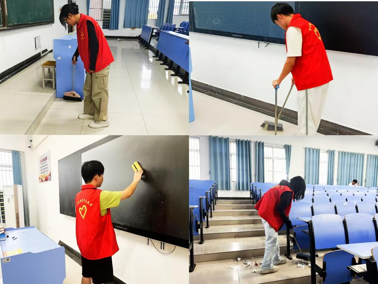 教室里,同学们分工明确,细致认真,确保每一个角落都一尘不染。忙碌的身影还透露着细心和耐心,每一个动作都充满能量,每一滴汗水都是他们热情的结晶。经过大家的努力,原本略显杂乱的教室焕然一新,桌椅摆放得整齐有序干净的黑板能反射出窗外的阳光。他们劳动的身影散落在教室的各个角落,成为了一道亮丽的风景线。