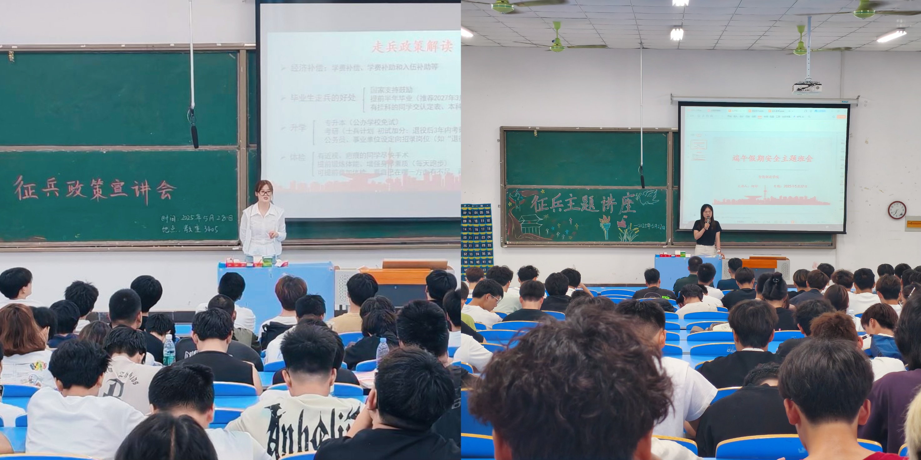 为激发毕业生参军报国热情,扎实推进学院征兵工作,智能制造学院于5月27日、28日举办两场“青春向军营·奋斗正当时”毕业季征兵政策宣讲会。宣讲会由辅导员柯婷、晏学渊作主持并解读政策,特邀两名优秀退伍大学生士兵分享军旅经历,为毕业生提供精准政策指引和榜样力量。