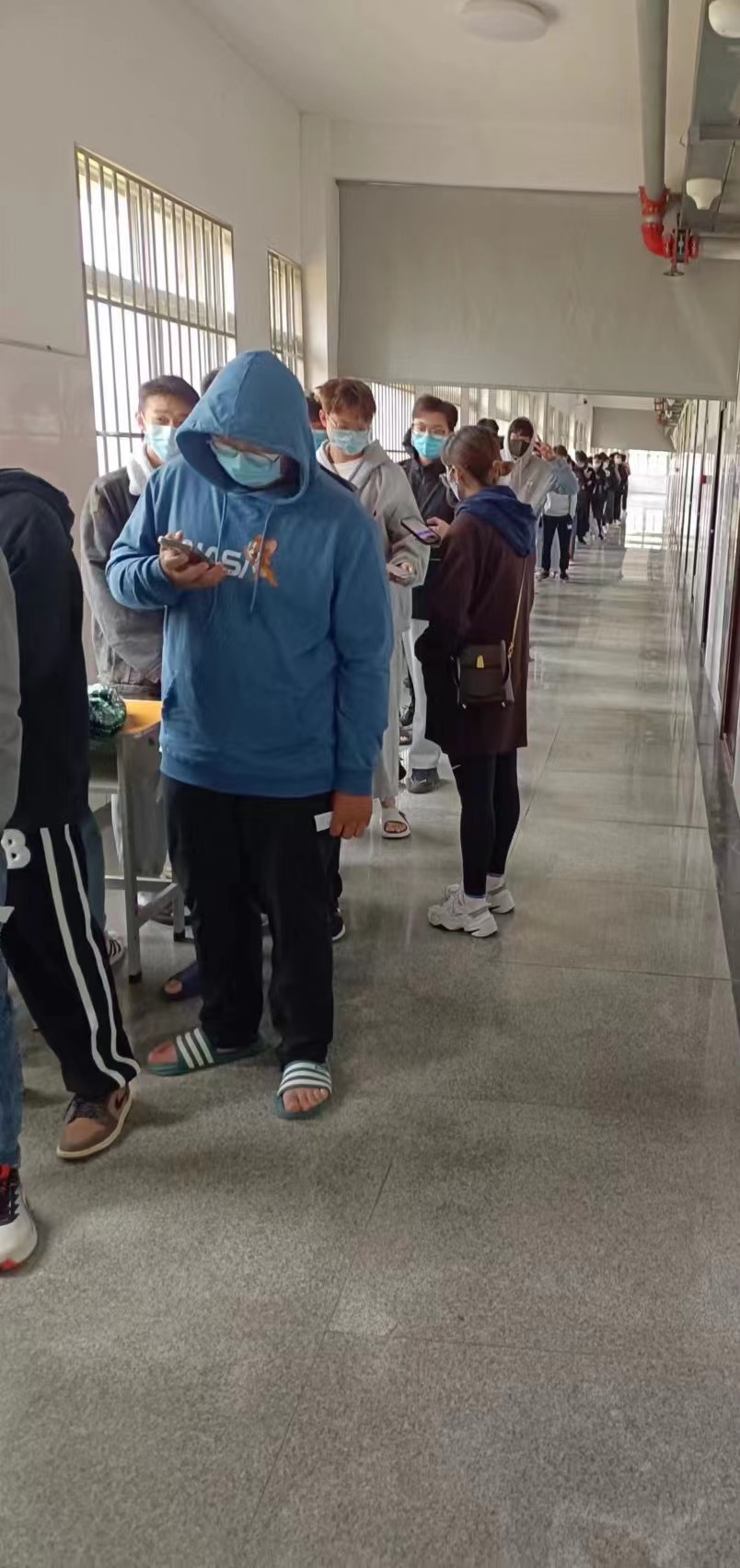 做抗疫路上的志愿者。封校期间,学校多次进行学生全员核酸,辅导员们响应学校号召,投身各个楼栋,化身志愿者组织学生扫码进行核酸检测,做到应检尽检,不漏一人。11日,接到社区疫情防控部门的电话,智能制造学院某宿舍成员为时空伴随者,寝室全体成员被要求在寝室实行静默管理,医护人员将上门检测核酸,在三次核酸检测结束后,结果全为阴性才能解封寝室。接到消息,辅导员阮晓兵第一时间前往该寝室与学生沟通交流,并主动承担了为学生送餐的工作,化身志愿者。