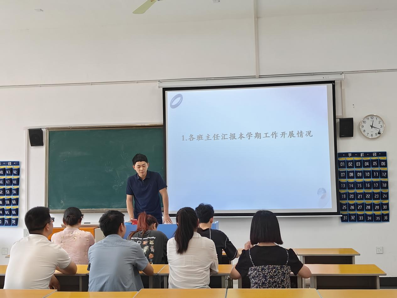 会上五位班主任对本学期工作做了详细的总结,并分享了各自工作中遇到的问题和工作经验。各班主任深入班级、深入学生寝室,开展了查课、查寝、查早晚自习,与学生谈心谈话,组织学生召开班会,加强对学生的思想引领及学业规划等工作,并积极对接班级辅导员开展各项工作,在班级管理中起到了积极作用。