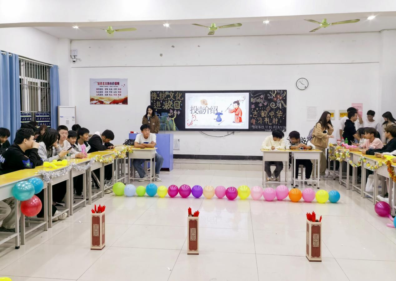 本网讯(通讯员 桂秉盛)为传承中华优秀传统文化,增强学生文化自信,感受传统文化的魅力,10月23日晚18:30,智能制造学院在4201教室举行了以“投壶之礼,雅趣古风”为主题的投壶比赛活动,2024级全体新生参加,本次活动由机械2303班杨子华主持。