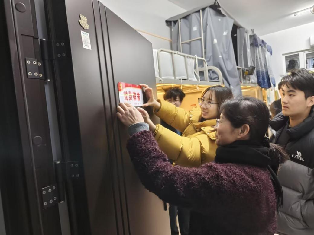 本网讯(通讯员 王敬一)为充分发挥学生党员的先锋模范作用,营造“一名党员一面旗,一间寝室一个家”的优良育人氛围,12月24日智能制造学院党总支书记王艳、学生党支部书记雷倩带领全体辅导员深入学生宿舍,为在校党员举行“党员宿舍”挂牌仪式,以党建赋能学生宿舍育人阵地建设