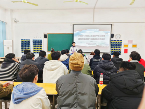为深入学习贯彻党的二十届四中全会精神,引导青年学生党员深刻把握“十五五”时期发展要求,将个人成长融入中国式现代化建设大局,2025年11月17日,智能制造学院党总支书记王艳以“认真学习党的二十届四中全会精神,勇挑中国式现代化建设的时代重任”为主题,面向全院学生党员讲授专题党课。全体学生党员、入党积极分子代表参加学习。