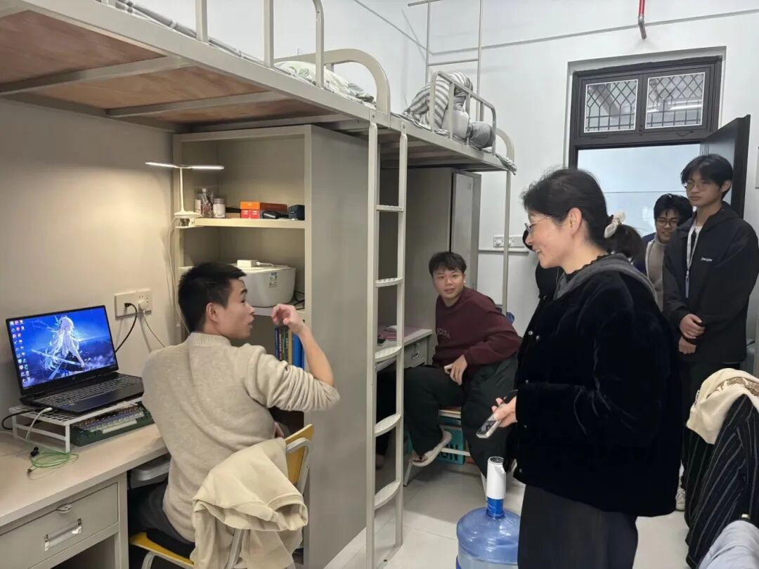 王书记与各辅导员深入学生宿舍,聚焦“用电、消防、设施、卫生”四大关键领域,逐一细致核查。在用电安全方面,重点排查违规使用大功率电器、插线板私拉乱接、“人走未断电”等问题,从源头把控用电风险;消防方面,逐一检查灭火器等设施是否完好,清理楼道及阳台堆放的杂物,确保逃生通道畅通无阻;同时,仔细检查床铺护栏、门窗锁具等设施的运行状态,及时记录需报修事项,并对宿舍卫生死角及通风情况提出明确要求。此外,针对卫生健康相关专业学生的特点,专项检查组特别强调了宿舍环境整洁对健康防护的重要性,重点整治“脏乱差”及易滋生细菌的卫生隐患。