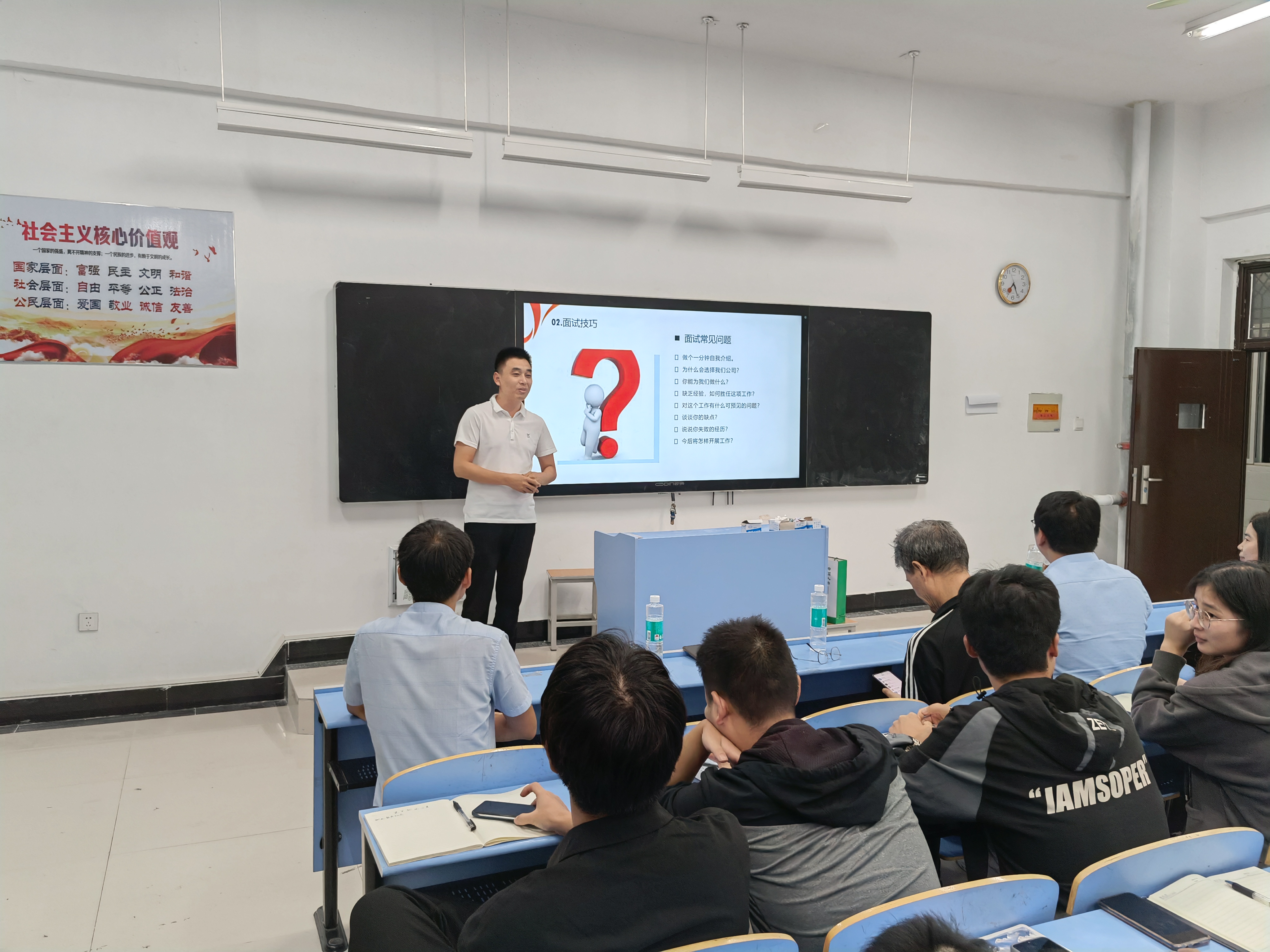会议伊始,陈艳茹经理从“市场环境”、“疫情影响”、“企业人员需求”三个角度为同学们介绍了近年本科毕业生的就业形势及就业情况。随后,陈经理分别从行业及岗位、实习流程、简历制作及面试技巧等方面进行细致讲解,并对同学们存在的疑惑进行解答。陈经理指出,要准确分析自身情况,平衡考研与就业问题,确定好目标企业,调动自身积极性,将眼光放宽,及时把握住机会。