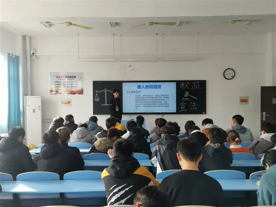 主题讲座上,贾锋同学首先就大学生维权意义进行讲解,领读和学习了《大学生维权法则》。随后,贾锋同学从发生在同学们身边的案例出发,为同学们分析了校园贷的犯罪危害、行骗套路和欺诈逻辑,引导同学们如何规避这种案件的发生,如何运用有效的法律武器保护自己的合法权益以及维权时的注意事项。
