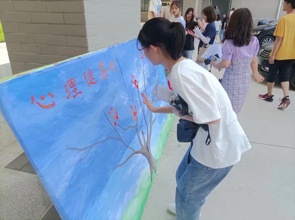 活动期间,不少同学随着课间的人流闻声而来,在健康树上留下自己的手印。同时表示在学业繁重的大学生活中,通过这种新颖的互动方式感受到了学校对大学生们心理健康的关心。同学们的热情让这棵“心理健康树”变得五彩缤纷,记录了同学们在填充健康树时放松、愉悦的心情,让本次活动的开展变得更加富有意义。