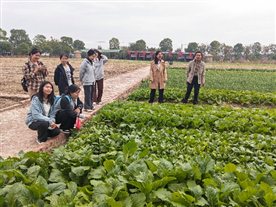 随后,调研团队参观了铜铃岗果蔬园内的智能农业试点阳光大棚,了解当地农业现代化探索的先进理念和技术应用,主要包括无土化蔬菜种植、鱼菜共生、田间管理等项目,为学生打开了一扇通晓未来农业发展新模式的窗口,充分认识到现代农业的发展对于保障粮食安全的重要意义。