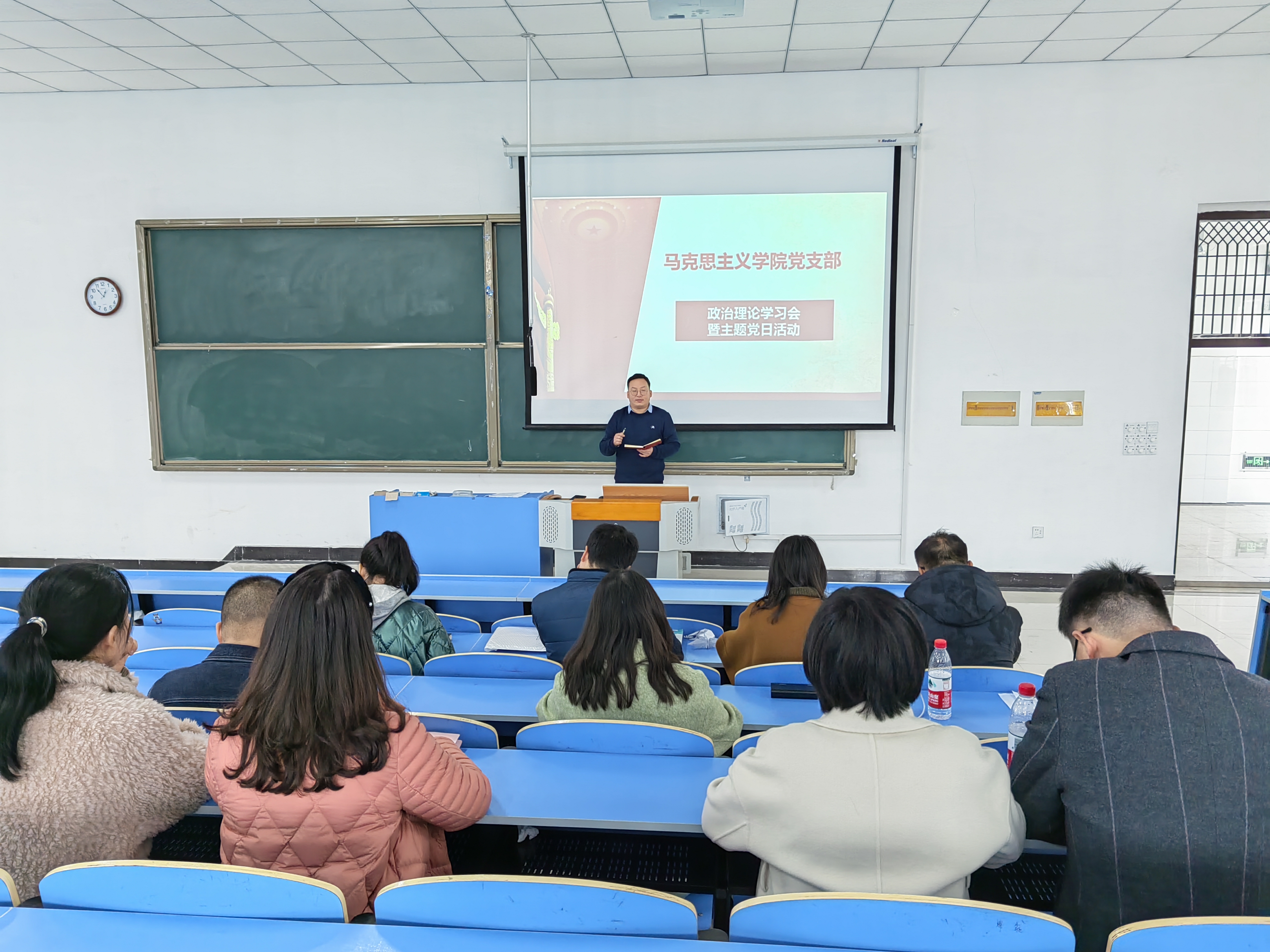 3月1日中午,学院党支部在5205教室组织开展2月份政治理论学习暨主题党日活动。学院全体教职工参加学习,会议由支部书记胡兆凌主持。