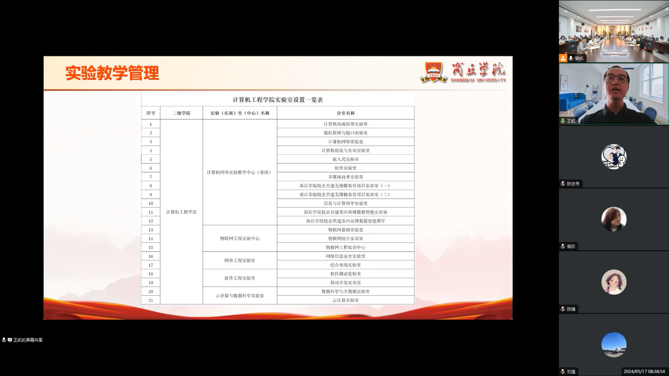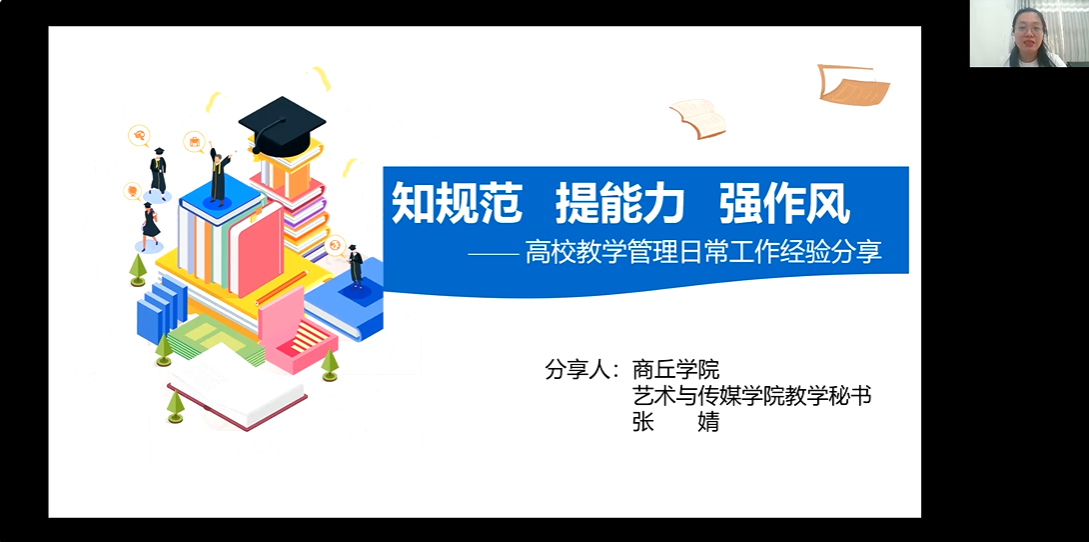 本次培训,特邀商丘学院风景园林与建筑学院实验室主任张志芳,商丘学院计算机工程学院实验中心主任王凯,商丘学院艺术与传媒学院教学秘书张婧,商丘学院机械与电气信息学院教学秘书高珍,分别从加强实验室规范管理实验教学技术人员的管理与服务、高校教学管理日常工作经验分享教学秘书业务及合格评估经验分享四个方面作了专题讲座,进行了精彩的阐述和解读。通过讲解,培训人员进一步学习领悟了教学管理的内涵、找准了教学管理中的难点和痛点、理解了如何构建管理体系、思考了如何提升教学管理的质与效、探讨了如何强有力完成教学管理的执行力。