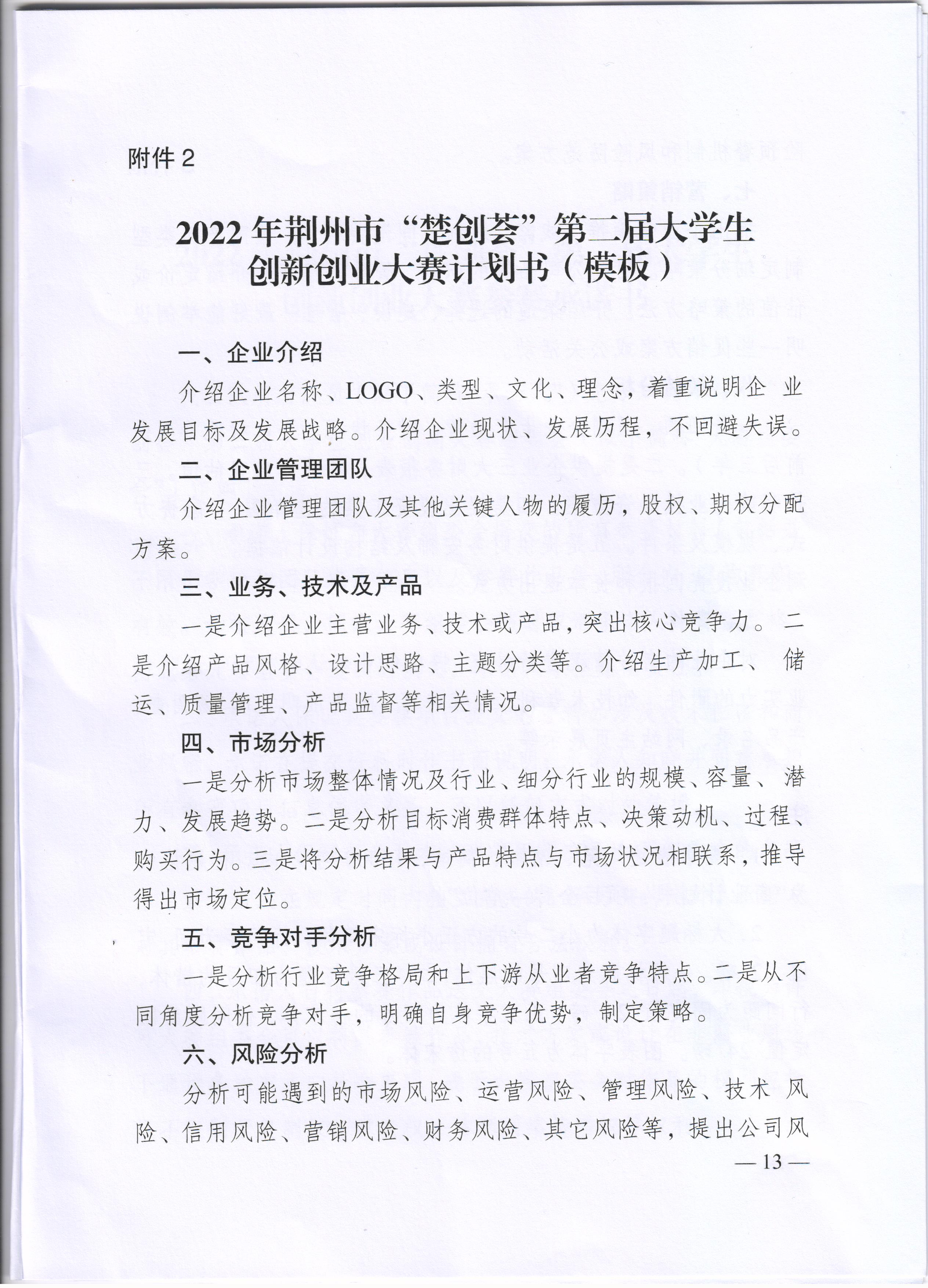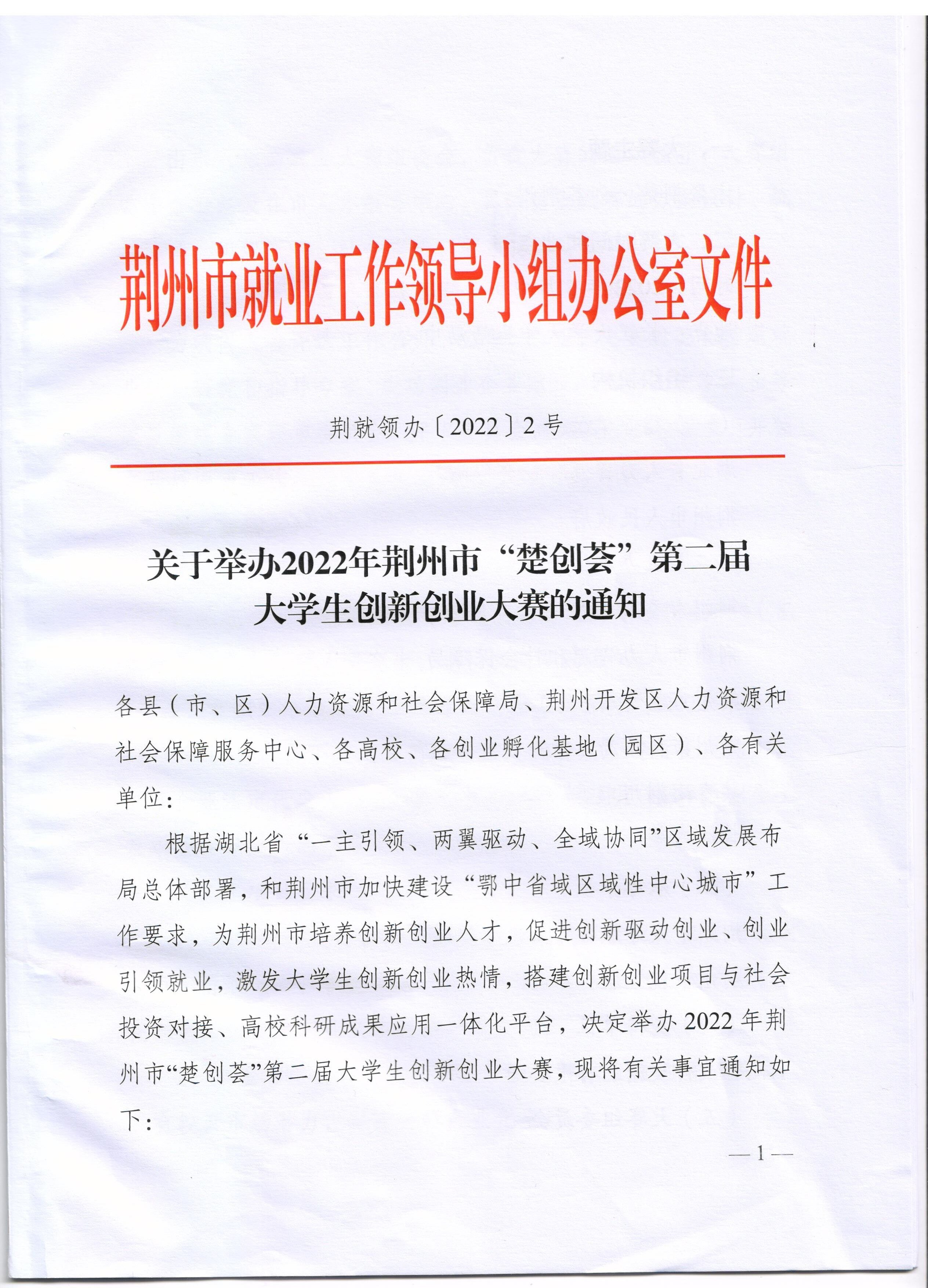 关于举办2022年荆州市“楚创荟”第二届大学生创新创业大赛的通知