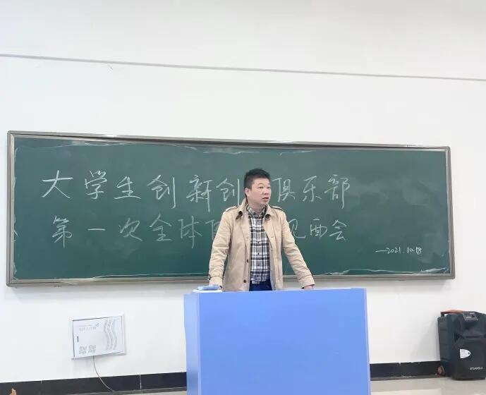 指导老师关明明就本学期大学生创新创业俱乐部的工作进行了详细的安排和布置,并提出双创大家庭的所有成员都要拧成一股绳,饱含激情,在“做”中成长。