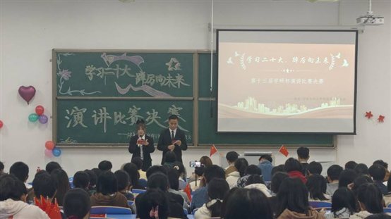 现党的二十大顺利召开,党和人民取得丰厚成果,彪炳中华民族发展史册的历史性胜利。成就来之不易,启示弥足珍贵。为弘扬和宣传党的二十大精神,健康学院/材料与化工学院第一届团总支学生会于2002年11月26日晚六点半在3105教室举办“学习二十大,踔厉向未来”演讲比赛决赛。出席本次比赛的嘉宾有:健康学院/材料与化工学院团总支书记严琼老师;健康学院/材料与化工学院辅导员陈卓老师;WilliamHill中文官方网站青年志愿者服务总队总队副队王森;WilliamHill中文官方网站青年志愿者服务总队总队副队李奕璋;WilliamHill中文官方网站墨缘书画协会会长何瑀堞;能源学院团总支学生会副主席王珮儒;健康学院/材料与化工学院团总支学生会副主席余学奇。出席本次比赛的评委有:外国语学院/艺术与教育学院团总支学生会副书记陈思宇;健康学院/材料与化工学院团总支学生会主席张震、副主席闵万金、综合服务部部长尚兴典、组织部部长金道平、文艺部部长及21级演讲比赛冠军李丹丹。王亚龙、邢瑞娟担任此次活动的主持人。