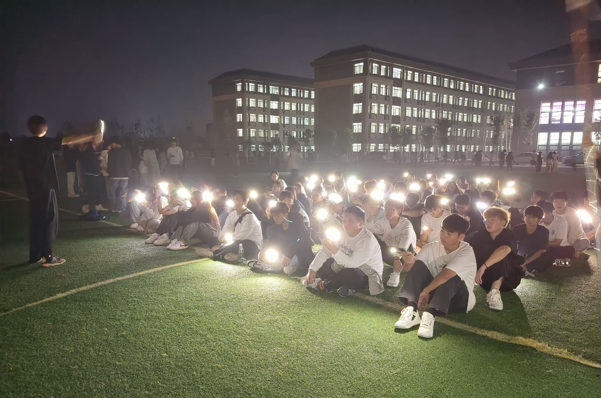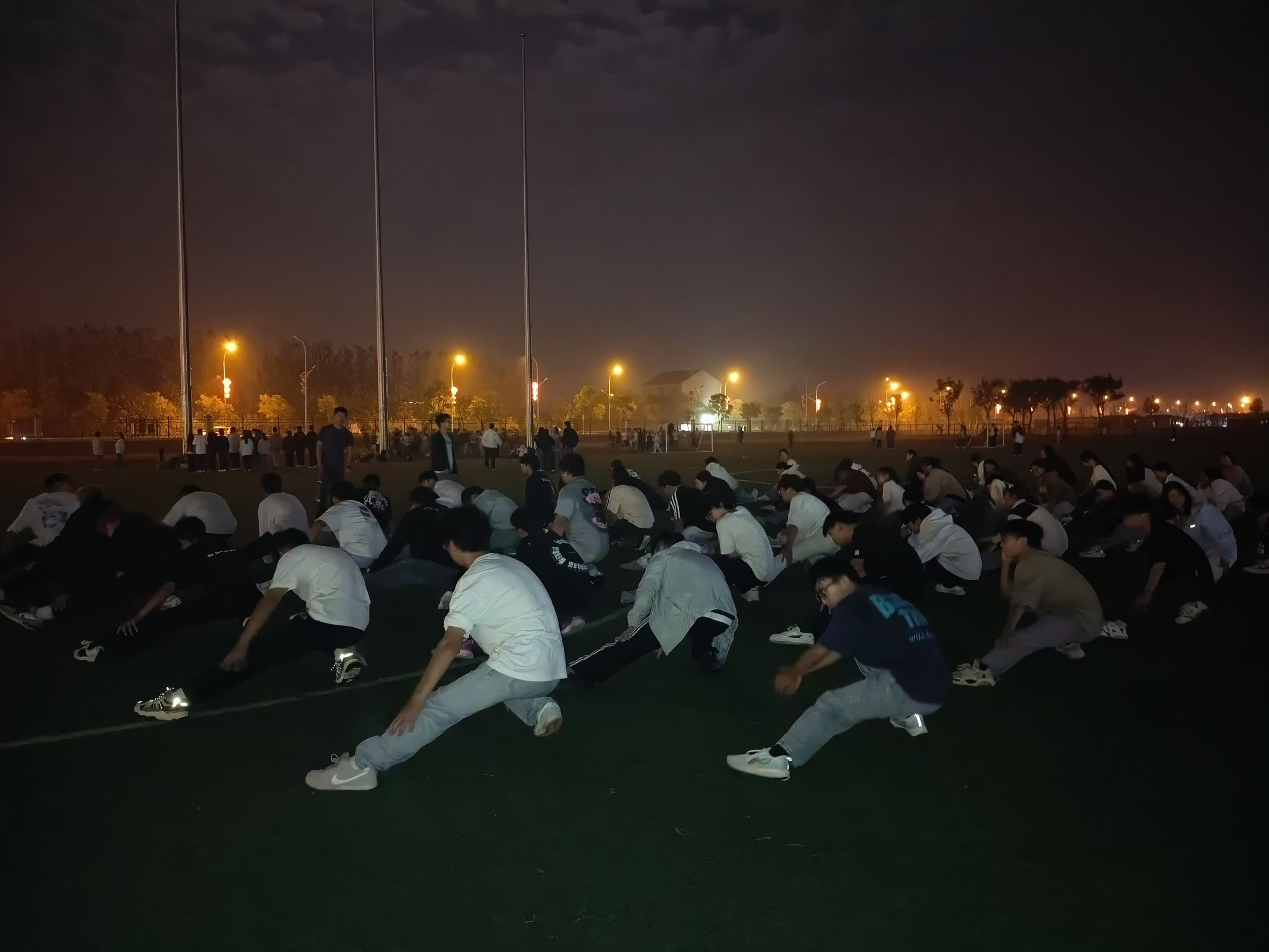 夜色降临,新干事们迎着晚霞,又一次踏上了操场,准备开始晚训。和早上一样的热身运动及跑步训练,新干事们同样充满干劲的认真完成。随后,部长团成员们精心安排了精彩的才艺表演,大家积极登台,唱歌、舞蹈、脱口秀,节目精彩纷呈,大家欢笑声不断。干事们也通过才艺表演了解到每一个人的爱好特长,增强了彼此之间的默契。