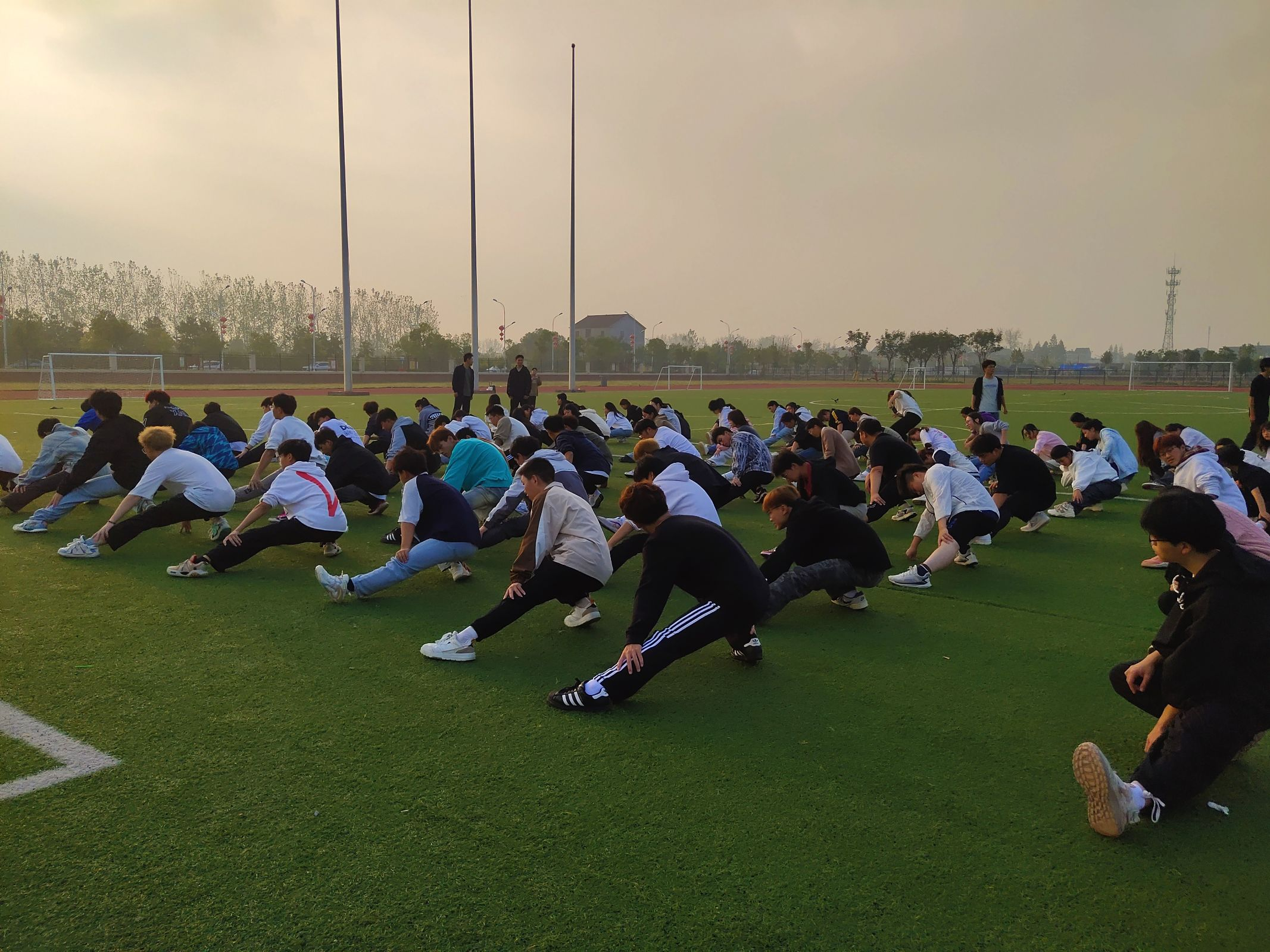 跑步运动结束后,干事们在教官的带领下,进行了拉伸运动,以缓解跑步后的肌肉紧张。他们认真地完成每一个动作,确保身体得到适当的恢复。伴随着上课铃声的响起,一天中的早训也正式落下帷幕。