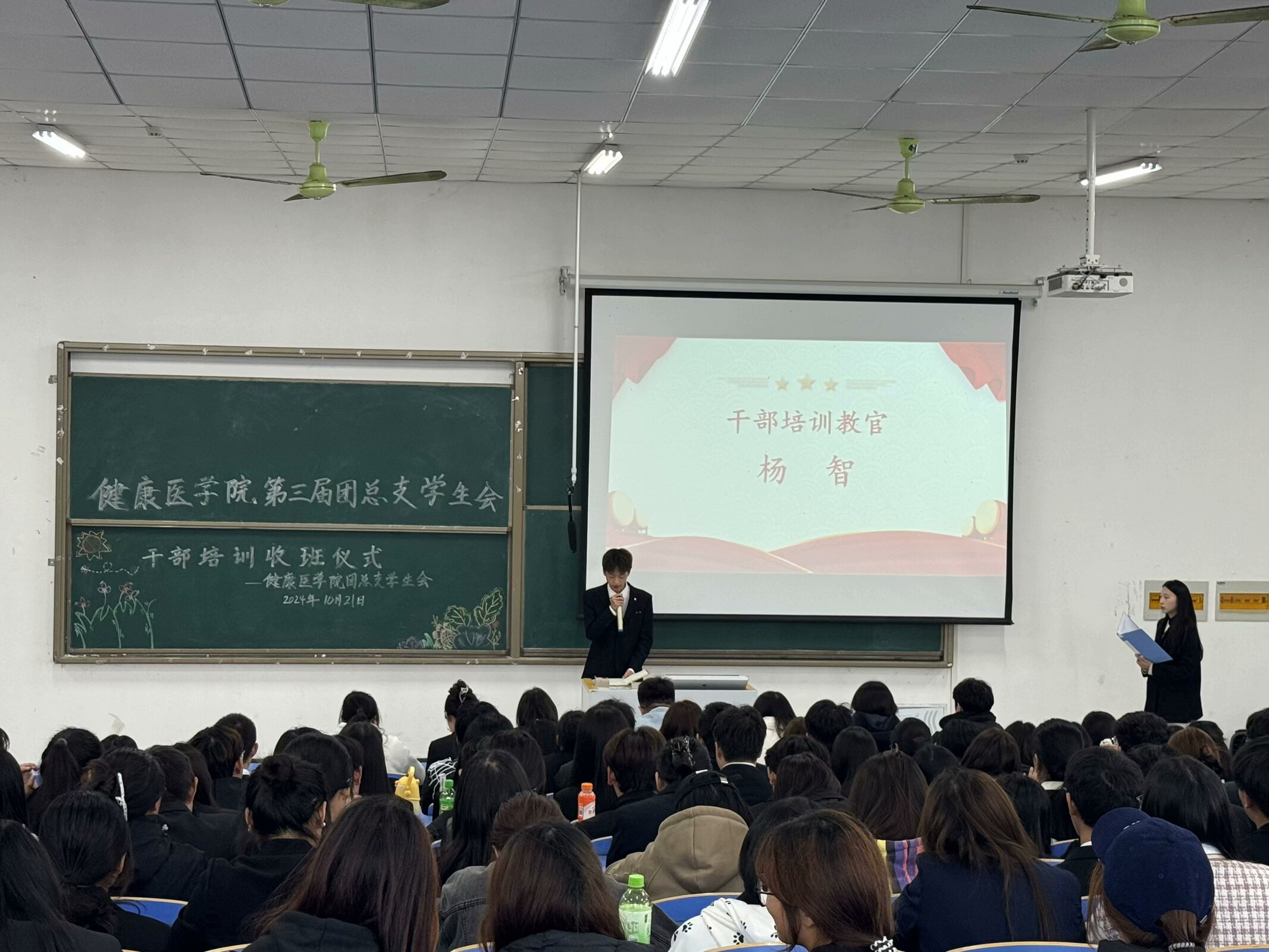 10月21日中午,健康医学院在3105教室召开第三届团总支学生会干部培训收班仪式,健康医学院团总支书记陈卓老师及学生会主席团成员出席会议,本次会议由办公室主任沈玉婷主持。