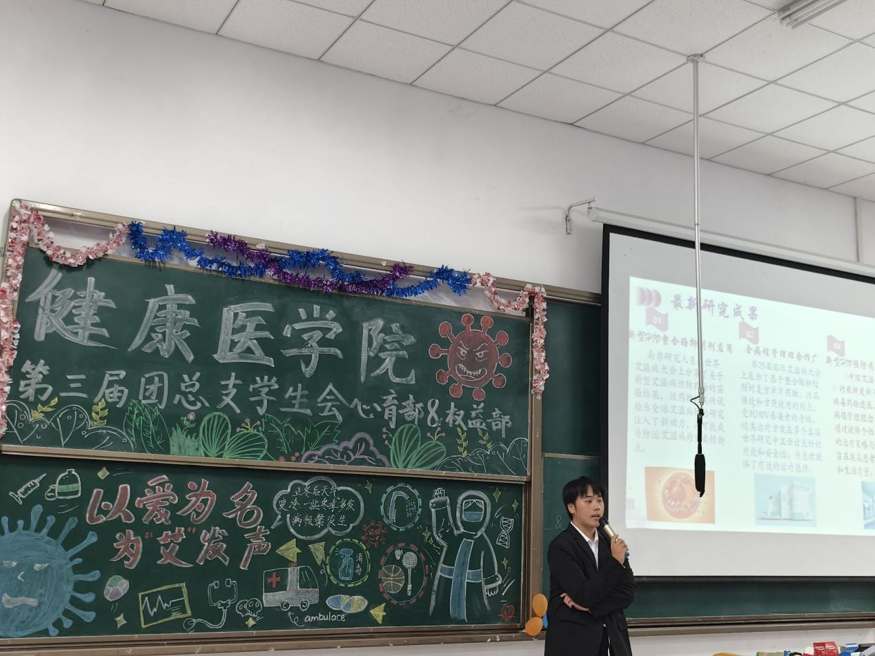 本网讯(通讯员:李潞)为了进一步提高同学们对艾滋病的认识与理解,扎实推进防“艾”知识进高校,增强同学们的自我保护意识和防护能力,营造健康向上的校园生活。10月27日晚上,健康医学院在3105教室隆重举办“以爱为名,为“艾”发声”主题知识讲座活动。此次活动由心育部干事牛嘉文主持,心育部干事蔡雨轩、权益部干事陈思源主讲。