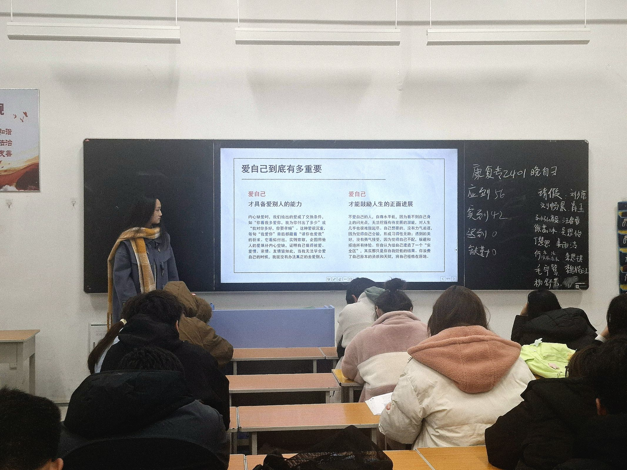 班会上,同学们积极讨论,分享自己的经历。不少同学们谈到,爱自己首先要关注自己的身体健康。有的同学则表示会定期去图书馆阅读心理自助书籍,学习如何调整心态,以便更加得心应手地应对学习和生活中的挑战。