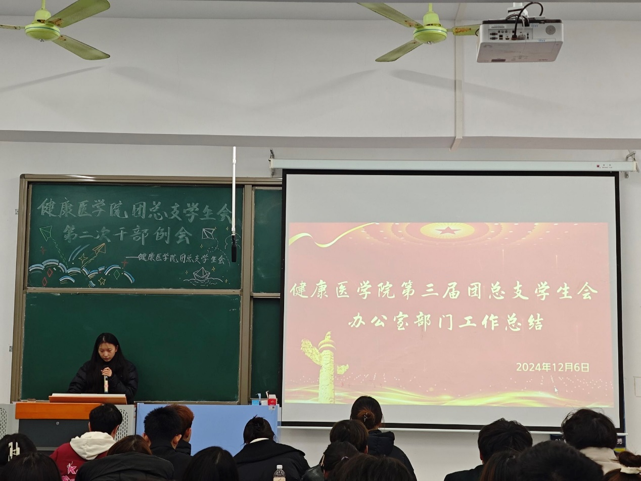 本网讯(通讯员:樊雅文)12月6日晚,健康医学院在2401教室隆重召开健康医学院第三届团总支学生会第二次干部例会。本次会议由办公室副主任周俊成主持。