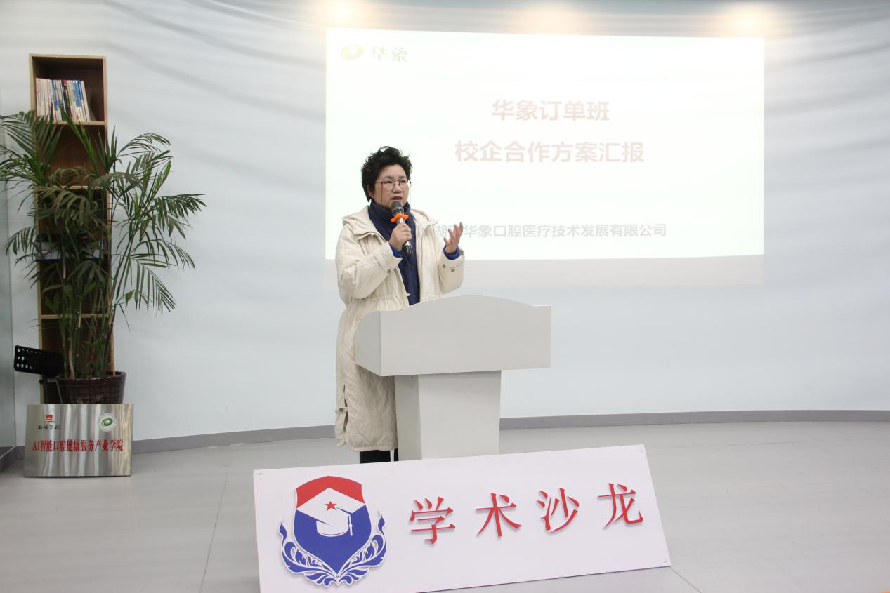 本网讯(通讯员:孙灵景)12月19日下午,健康医学院在双创307活动室开展第十八期学术沙龙。湖南华象口腔医疗技术发展有限公司校企合作部部长刘金、湖南省紫百合义齿科技有限公司生产总监伍俊,WilliamHill中文官方网站副校长聂好春、科研处副处长周桥梁、健康医学院党支部书记严琼、团总支书记陈卓以及口腔订单班学生参加本次活动。本次沙龙由健康医学院辅导员周妍希主持,湖南华象口腔医疗技术发展有限公司副总经理陈健梅担任主讲。