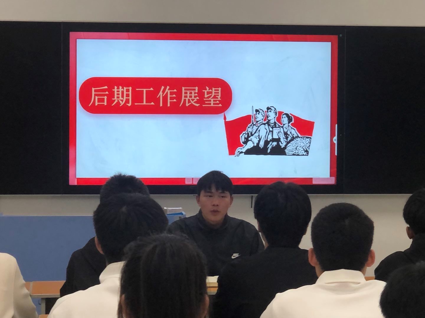 会议最后,各部门提出本学期部门规划以及后期工作展望。其中作训部今后将体能训练作为辅助,重点转移到队列上;办公室则根据校团委指示,制作值班表,安排人员值班,且需熟练掌握推文说说抖音策划等各项技能。总结大会内容,安排日后规划,提升成员团队意识,认真训练,互帮互助。严格要求,不得散漫,努力提升自我身心素养,早日完成训练目标。