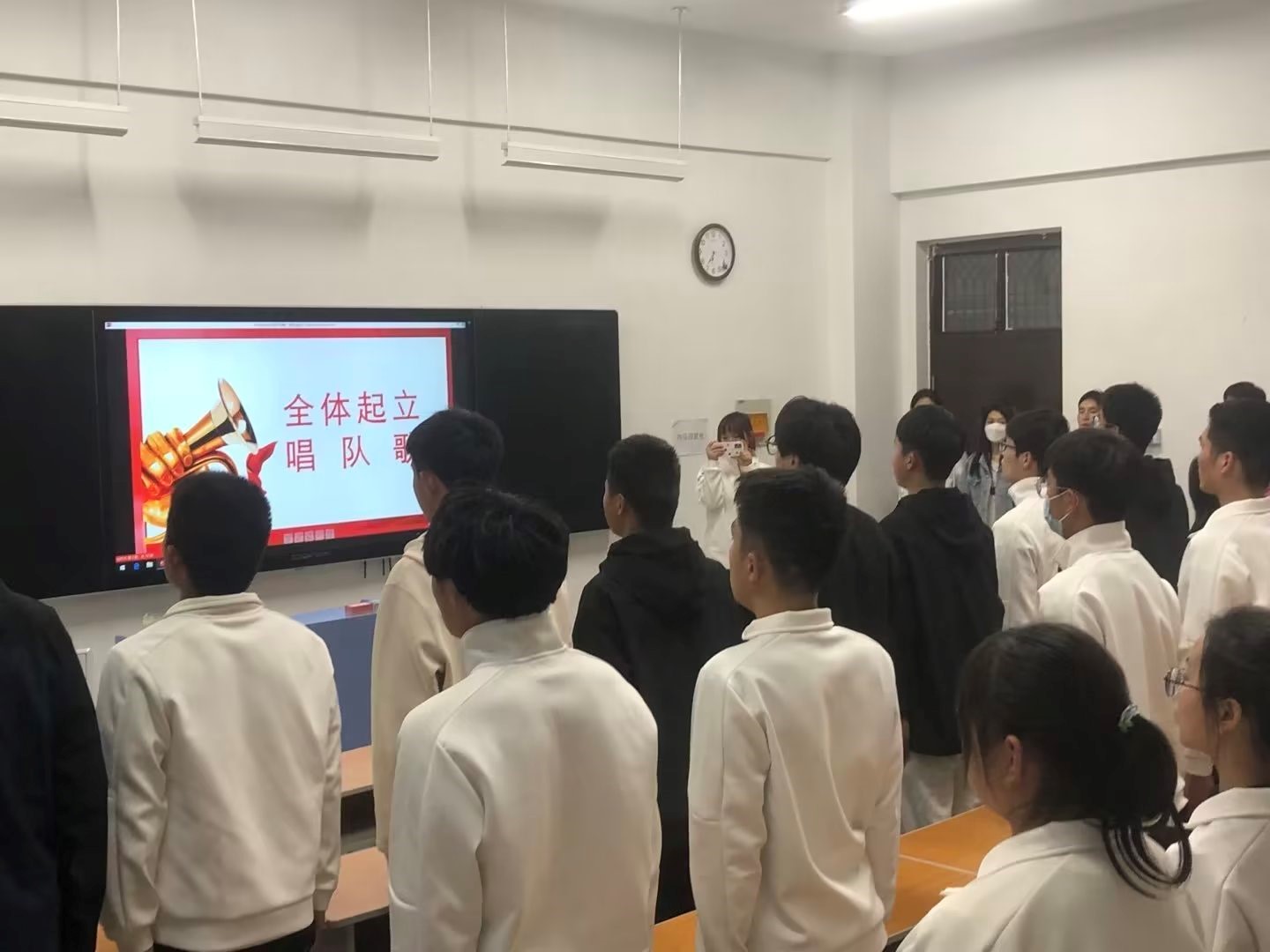 会议伊始,全体起立,唱队歌。由队长对上学期工作进行总结,对大一出色队员提出表扬,并提出现今存在的问题,且对新学期工作进行展望及规划。希望今后有一个更好的训练氛围和训练制度,使国旗护卫队能够更好的成长。