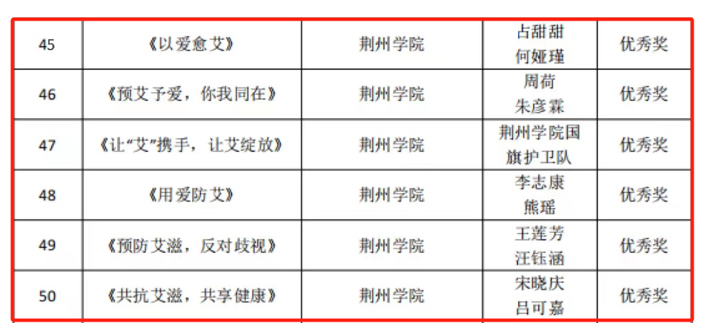 此次活动我校积极响应,精心筹划,学生参与热情高,创作作品质量优良,校团委通过一系列宣传教育活动,增强了全校师生对艾滋病的了解。本次活动以大赛为契机,旨在号召广大师生加强对艾滋病的关注,并切实参与到防艾的队伍中来,共建健康和谐社会。