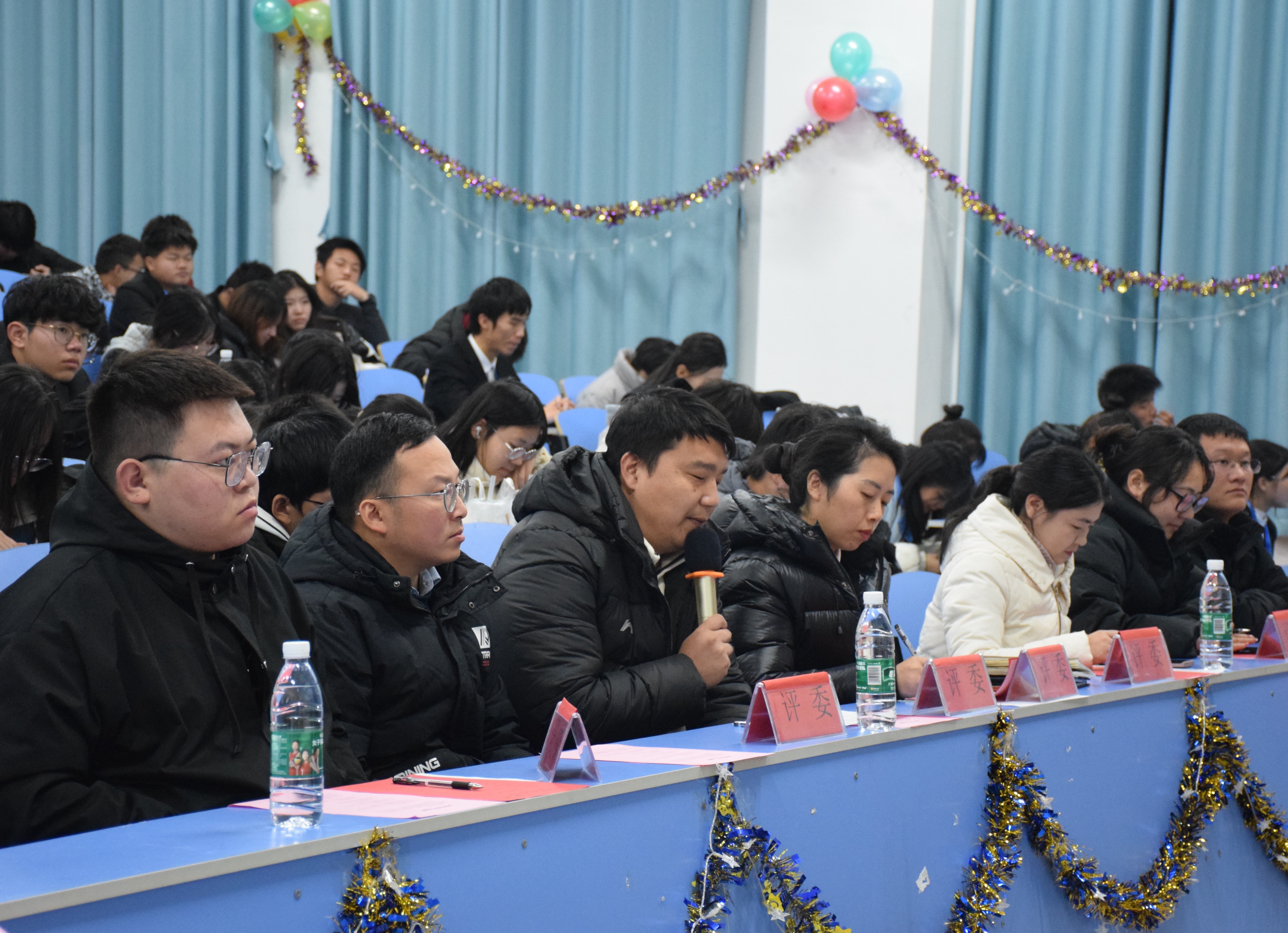 本网讯 12月19日晚,校团委在3205教室成功举办第十四届学研杯“诚信·责任·感恩”主题教育活动演讲比赛决赛。本次比赛邀请校长助理刘瑾老师,学务部部长许明超老师,马克思主义院长胡兆凌老师,校团委李红老师,学生工作处袁辉老师、王俊博老师、陈慧玲老师担任评委。本次决赛由大学生艺术团梁益和张文城主持。来自各分院学生代表、入围选手共240余人参加活动。
