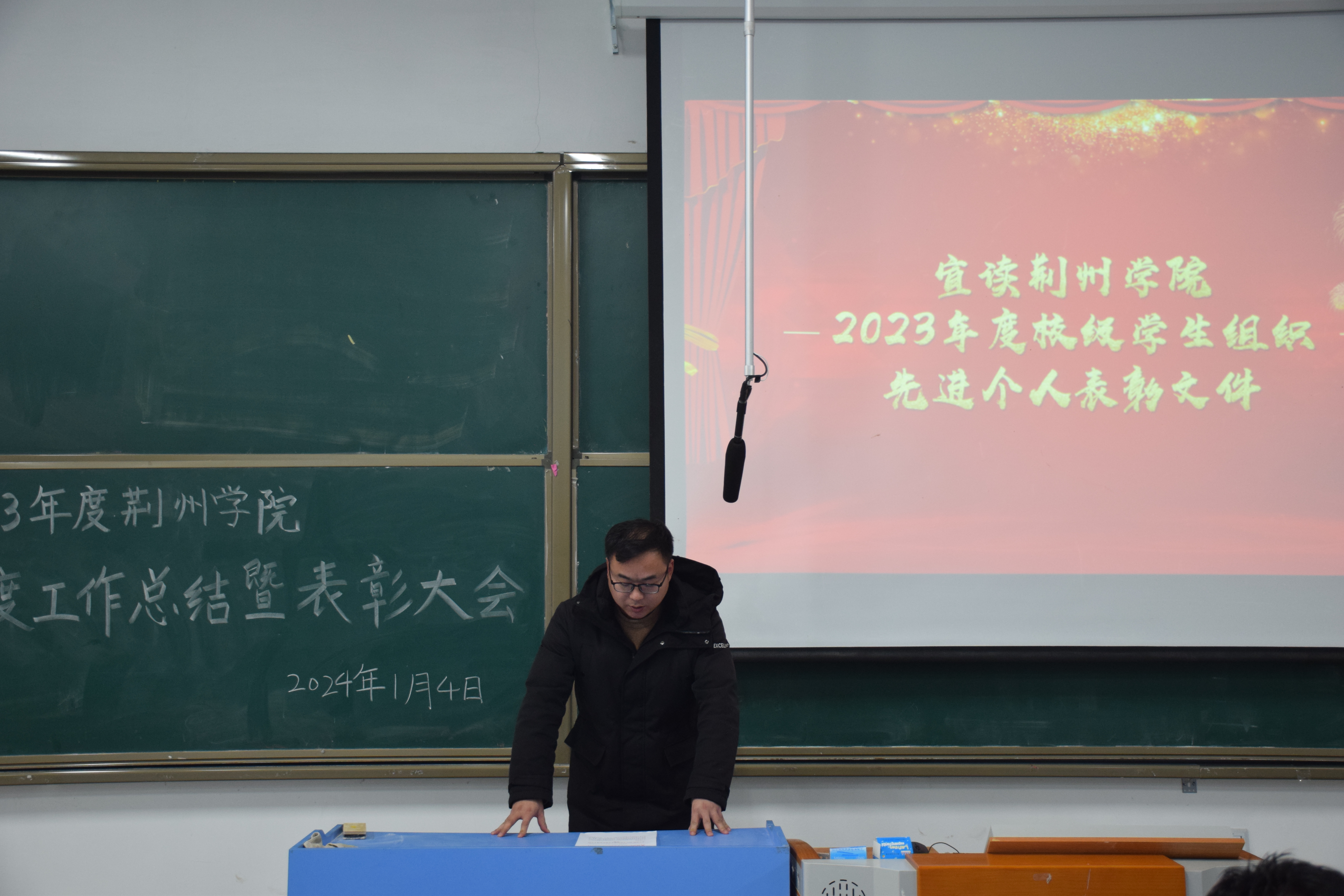 本网讯 (通讯员 李盼)为树立榜样,表彰先进,提高学生干部的工作积极性和动力,1月4日,校级组织2023年度工作总结暨表彰大会在5205教室召开。校团委李红老师、陈仁圣老师出席本次会议。六大团属学生组织学生干部代表260余人参加本次会议。此次会议由杨昊炅与陈思宇担任主持人。