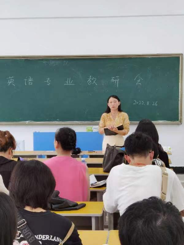 为扎实推进学院新学期各项教学工作有序开展,8月28日下午,外国语学院召开2022-2023学年第一学期新学期教学工作会议。院长魏春霞、副院长王浩及全院专任教师参加会议。会议分大学英语组和英语专业组两个会场举行。