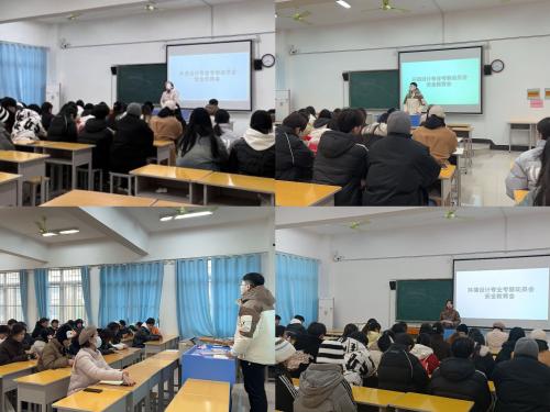 为进一步落实我院实习活动安排,强化安全教育,12月22日,在5202教室召开了22级环境设计专业设计考察动员会,共59名学生参加。动员会上,孙婉萍老师对本次外出写生实训课进行了简要说明,要求学生通过外出采风与实践教学活动,感受人文与自然环境,培养学生将传统文化融入现代设计的创作能力。辅导员黄德虎老师对同学们提出“明确目的、端正态度、满载而归”的要求和期许。最后,魏春霞院长进行了总结,她叮嘱同学们遵守法律法规、尊重当地的风俗习惯,保持良好的精神风貌,同时需加强组织纪律,始终把安全放在第一位,相关事宜一切听从带队老师的安排和指挥,并预祝考察活动圆满完成。