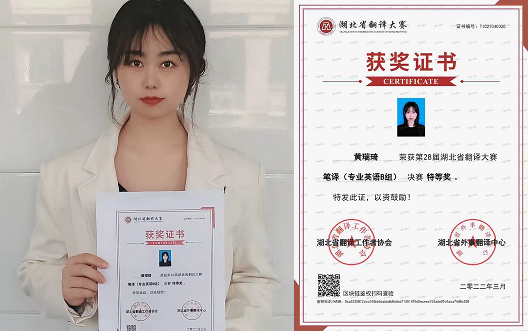 【新闻快讯】我校在湖北省翻译大赛中创新高,外国语学院黄瑞琦同学荣获特等奖