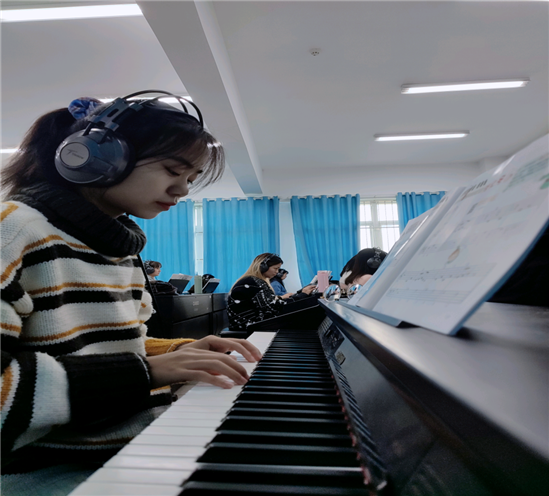 (图为 外国语学院学前教育专业学生练习钢琴)