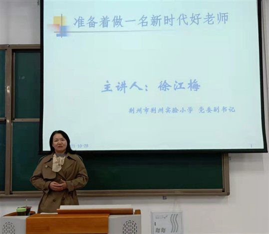(图为 荆州实验小学党委副书记徐江梅为学前教育专业新生讲座)