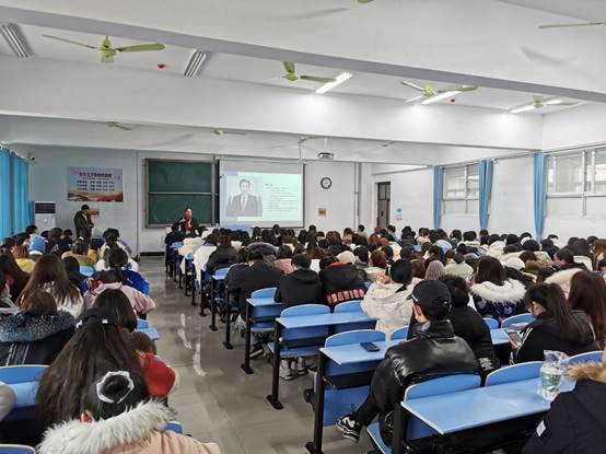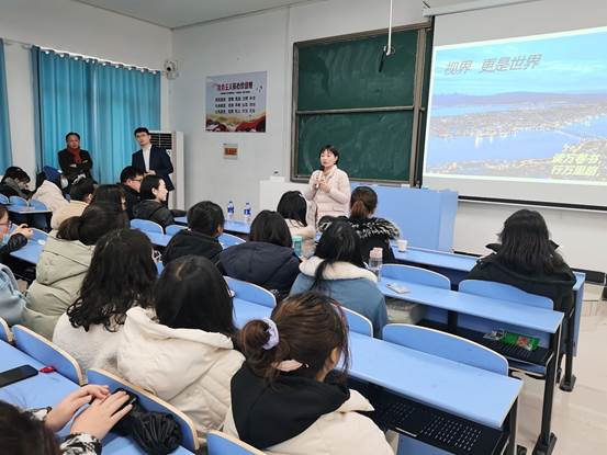 本网讯(通讯员 刘澳)外国语学院2019级全体学生即将进入实习阶段,为帮助学生们能快速进入工作状态,该院于12月29日下午在教学楼1301召开了2019级实习动员大会。外国语学院院长魏春霞老师,副院长王浩老师,党总支副书记马玲老师,团总支书记何龙老师,辅导员陈晓倩老师、邵一鸣老师、袁少阳老师,以及2019级实习指导老师丁琳老师、曾晶老师参加会议。实习单位万豪国际校企合作项目华中区代表杨骏、华中区实习项目助理李文嘉受邀参会。2019级全体同学参会。会议由魏春霞院长主持。