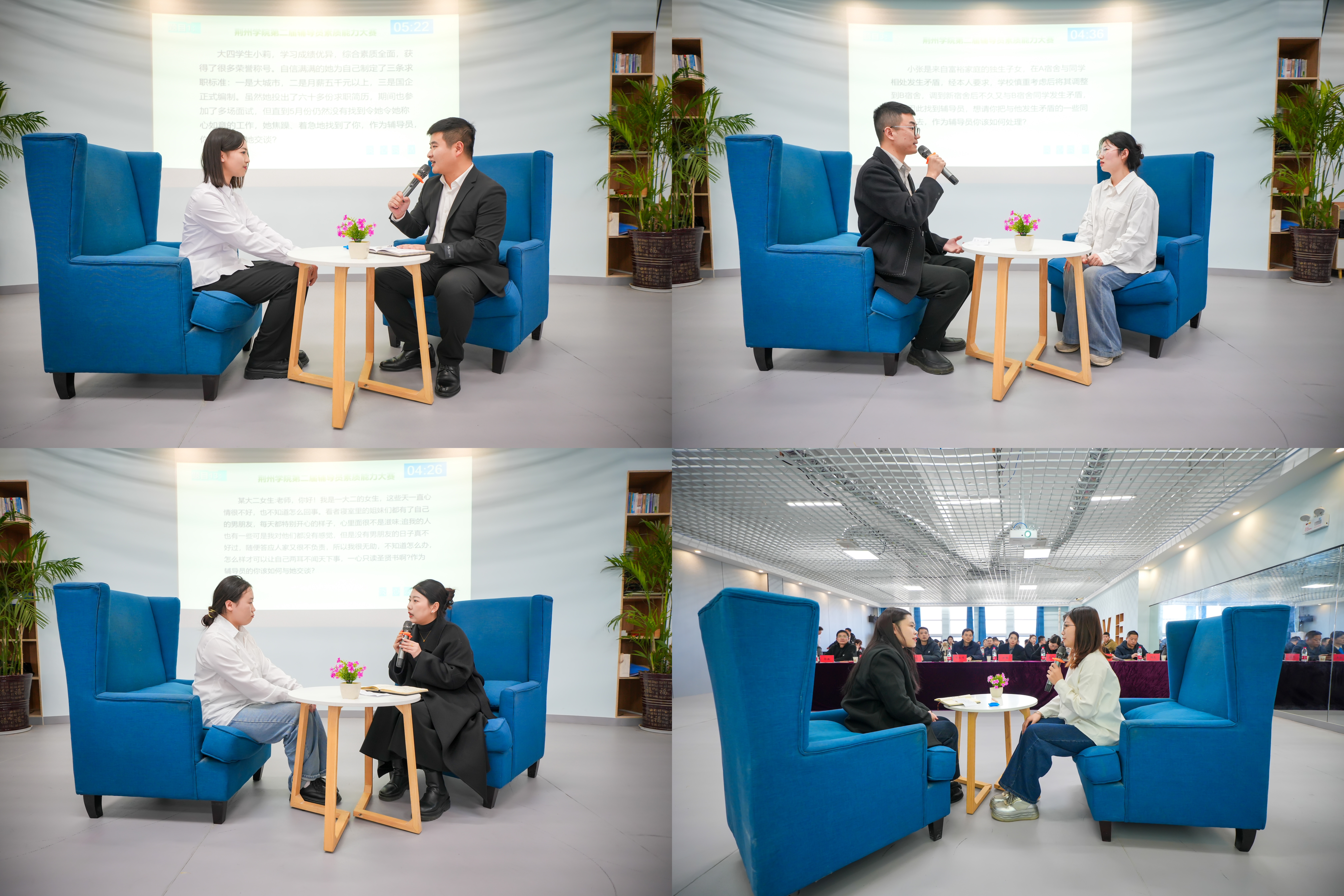 案例研讨环节,比赛以“我提问,你回答”的方式开展,由AB选手围绕案例共同辨析原因、研讨对策、总结规律。首先由A1选手根据抽取案例进行提问,B1选手作答,随后由B1选手根据抽取案例进行提问,A1选手作答,以此类推。案例聚焦思想引领、心理健康教育、危机事件应对等领域,参赛选手共同辨析原因、研究对策、总结规律,展现了辅导员团队良好的沟通和协作能力。