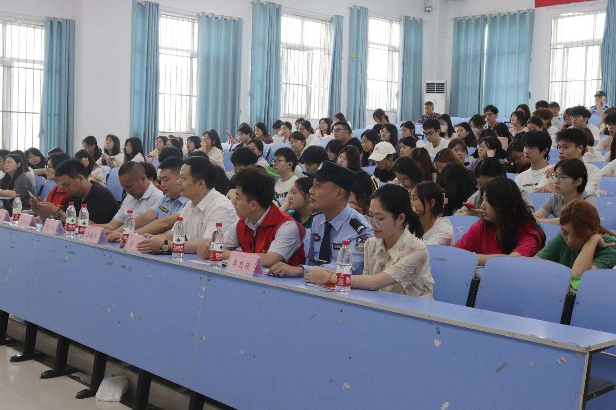 为深入贯彻落实民法典精神,增强师生法治观念和安全防范意识,5月28日上午,学校联合太湖港街道平安办、高新区公共服务局、太湖派出所等单位,在3105教室成功举办“民法典护航人生路·反诈禁毒共筑防护墙”主题宣讲活动。学务部副处长肖巍、太湖港街道平安办、高新区公共服务局、彭家场社区相关领导、民警、律师代表及师生代表共200余人参与活动。