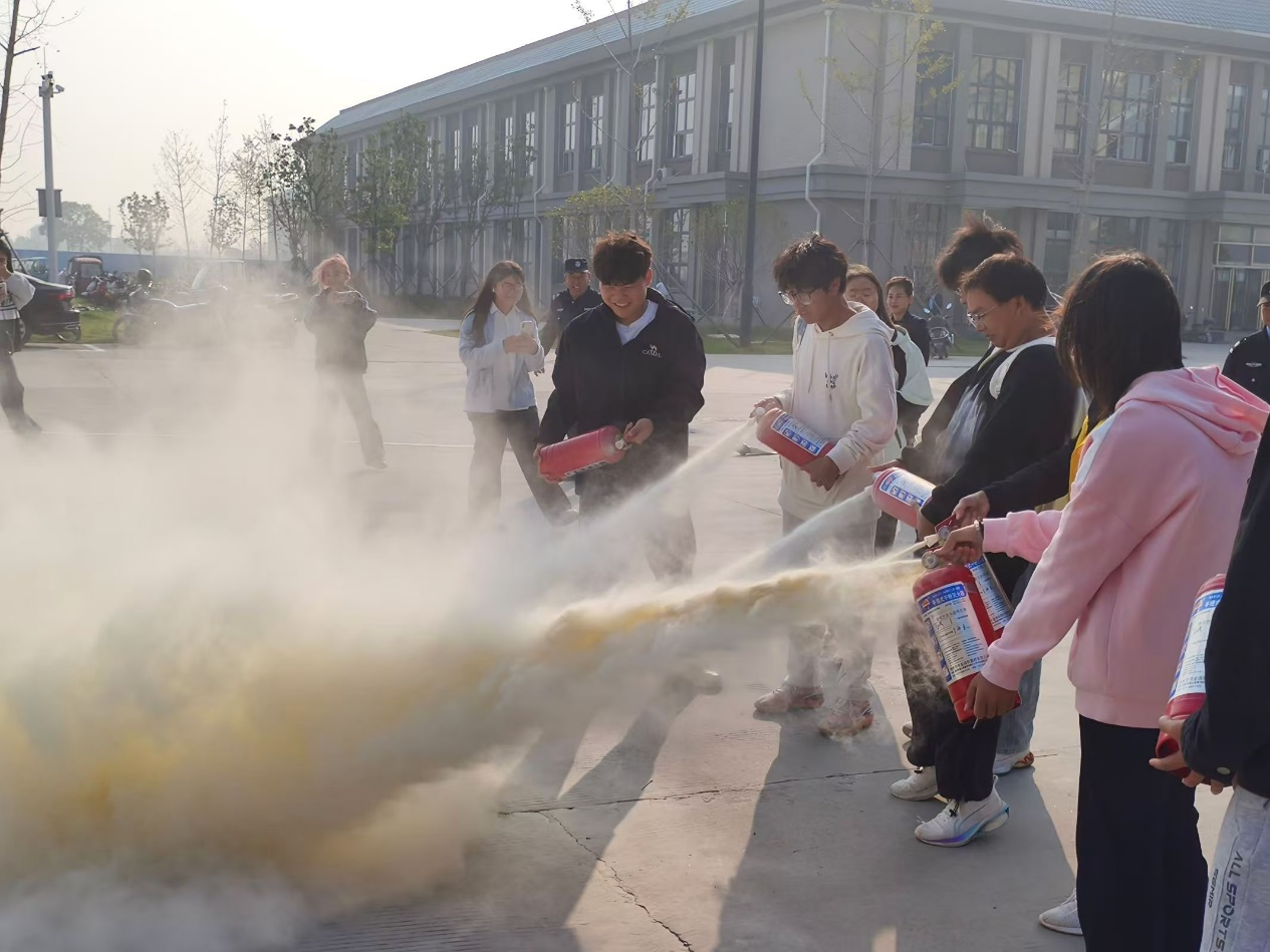 此外,学校还借此机会开展学生实操课堂,向大家教学灭火器的正确用法,并让同学们实际操作。师生们对消防安全知识有了更加深入的了解和认识。