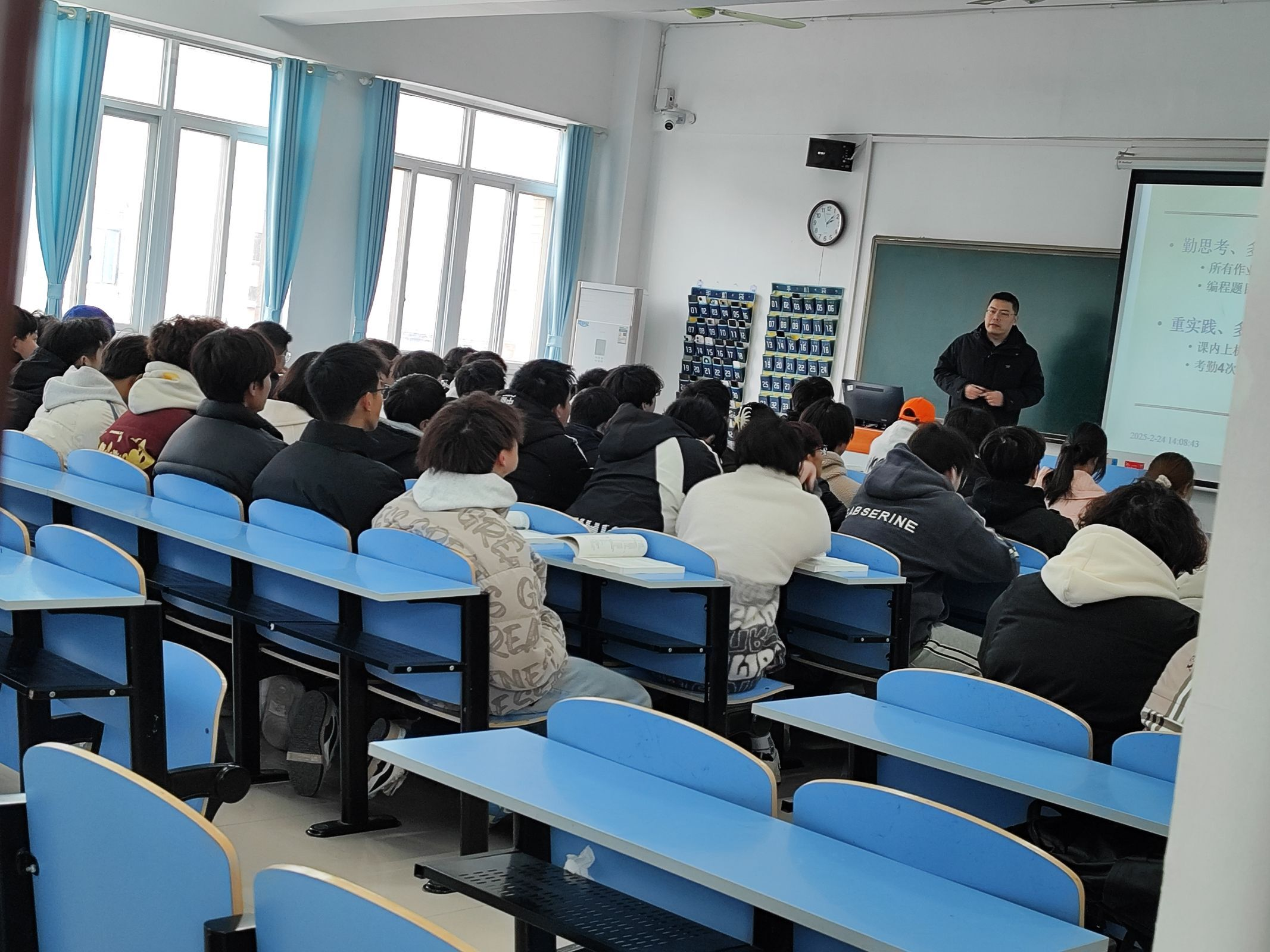 为进一步加强学院教风学风建设,强化教学管理意识,规范课堂教学监督管理,确保新学期“第一堂课”顺利有序开展。2025年2月24日,信息工程学院院长杜松江、副院长张继成、党总支副书记郭满、教学秘书以及全体辅导员深入教学一线,开展新学期教学巡查。