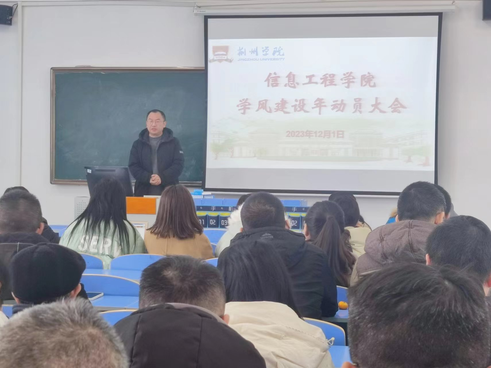 为进一步建设优良学风,建立长效机制,全力迎战本科教学工作合格评估,信息工程学院于2023年12月1日在5507召开了教学工作会议暨“学风建设年”主题活动动员部署大会。信息工程学院全体教职工参加了会议。