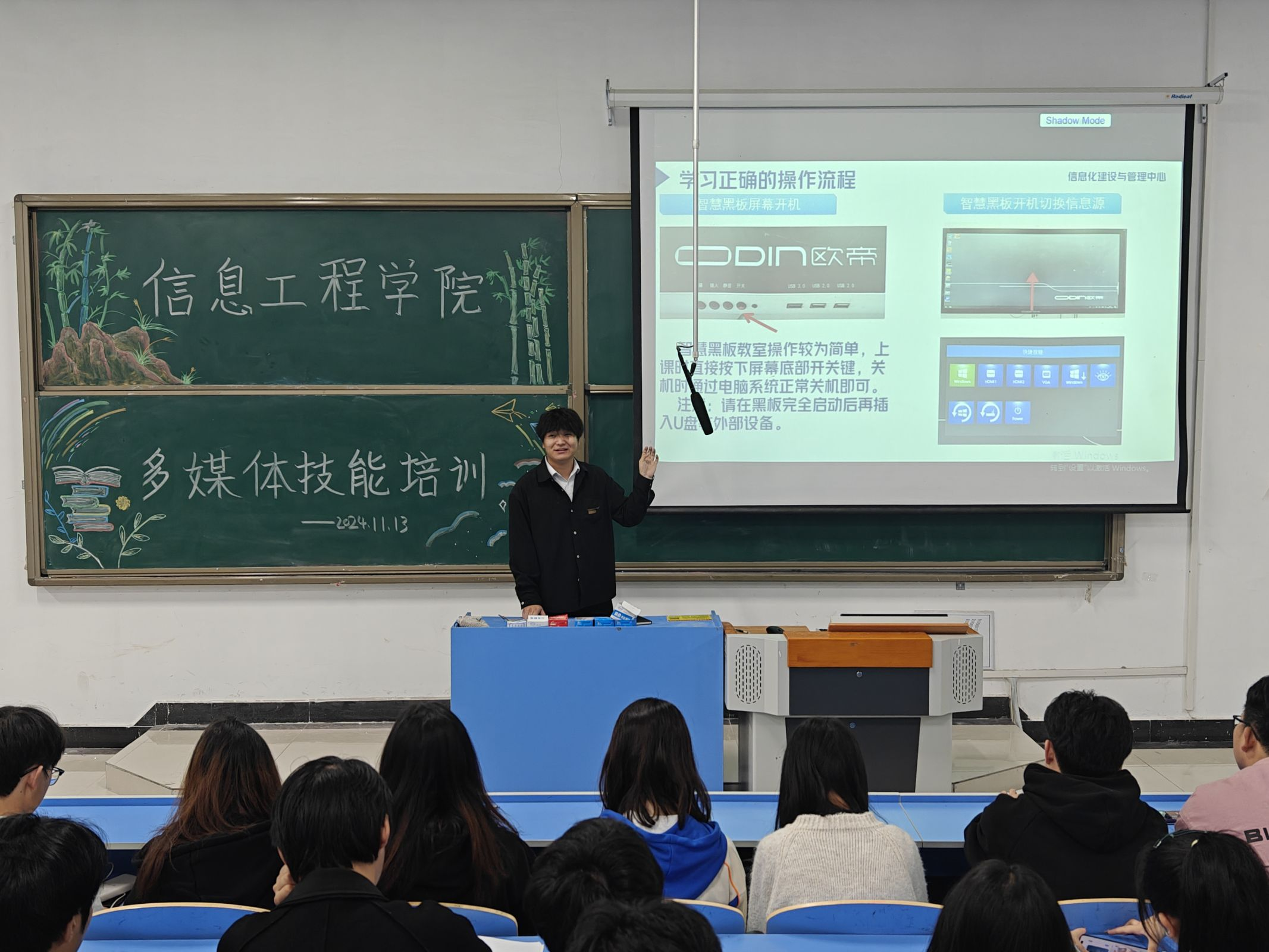 本网讯(通讯员 丁香)为提升同学们的多媒体技术应用能力,信息工程学院于11月13日晚在教学楼5205教室召开了信息工程学院多媒体技能培训大会,会议由信息工程学院团总支学生会生活部兼心育部部长李建明主讲。