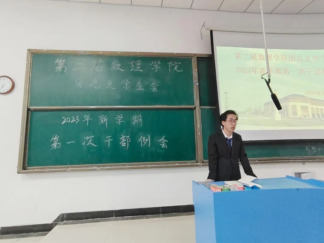 本网讯 一年之计在于春 ,又到了一年耕耘时。新的学期开启新的希望,新的空白承载新的梦想。为了加强学院学生组织的整体凝聚力以及各类活动和日常工作的开展,第二届数理学院团总支学生会2023年第一次干部例会于3月16日(本周四)18:10在5205教室召开,本次会议由综合服务部干事张正瑞主持,数理学院团总支学生会全员参与。