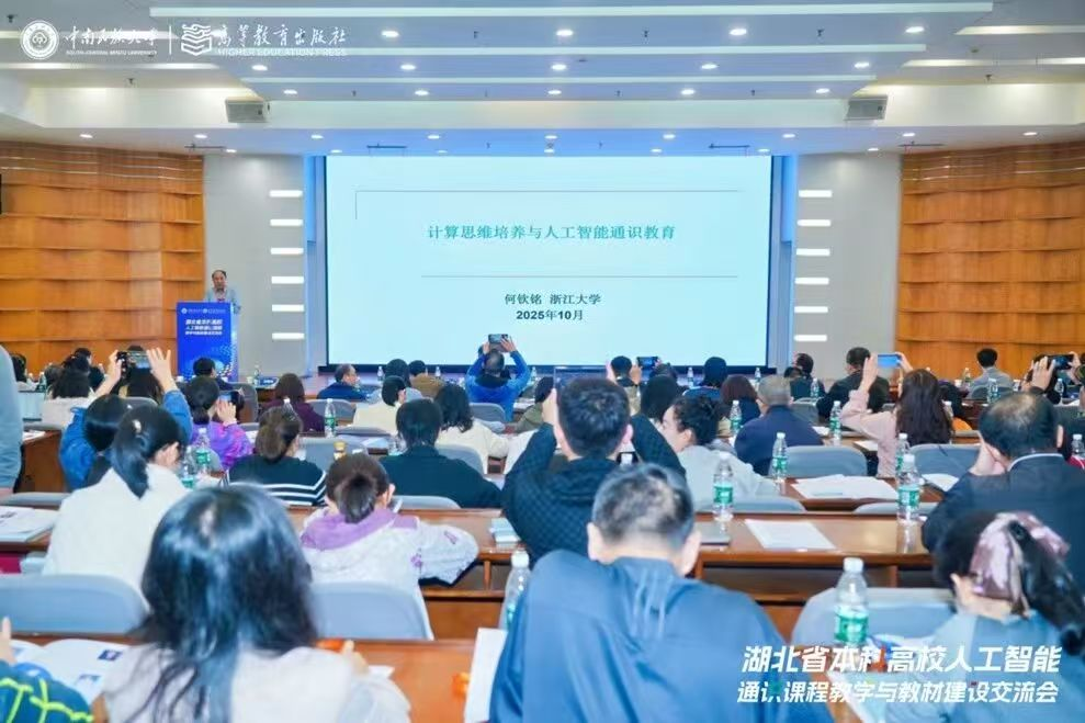 本网讯 为深化人工智能通识教育改革,提升课程教学质量与教材建设水平,信息工程学院院长杜松江、骨干教师卢东方于10月18日在武汉参加了由中南民族大学与高等教育出版社联合主办的“湖北省本科高校人工智能通识课程教学与教材建设交流会”。此次交流会汇聚了省内外多所高校的专家学者,围绕人工智能通识教育的课程设计、教学方法、教材建设等议题开展了报告与经验交流。