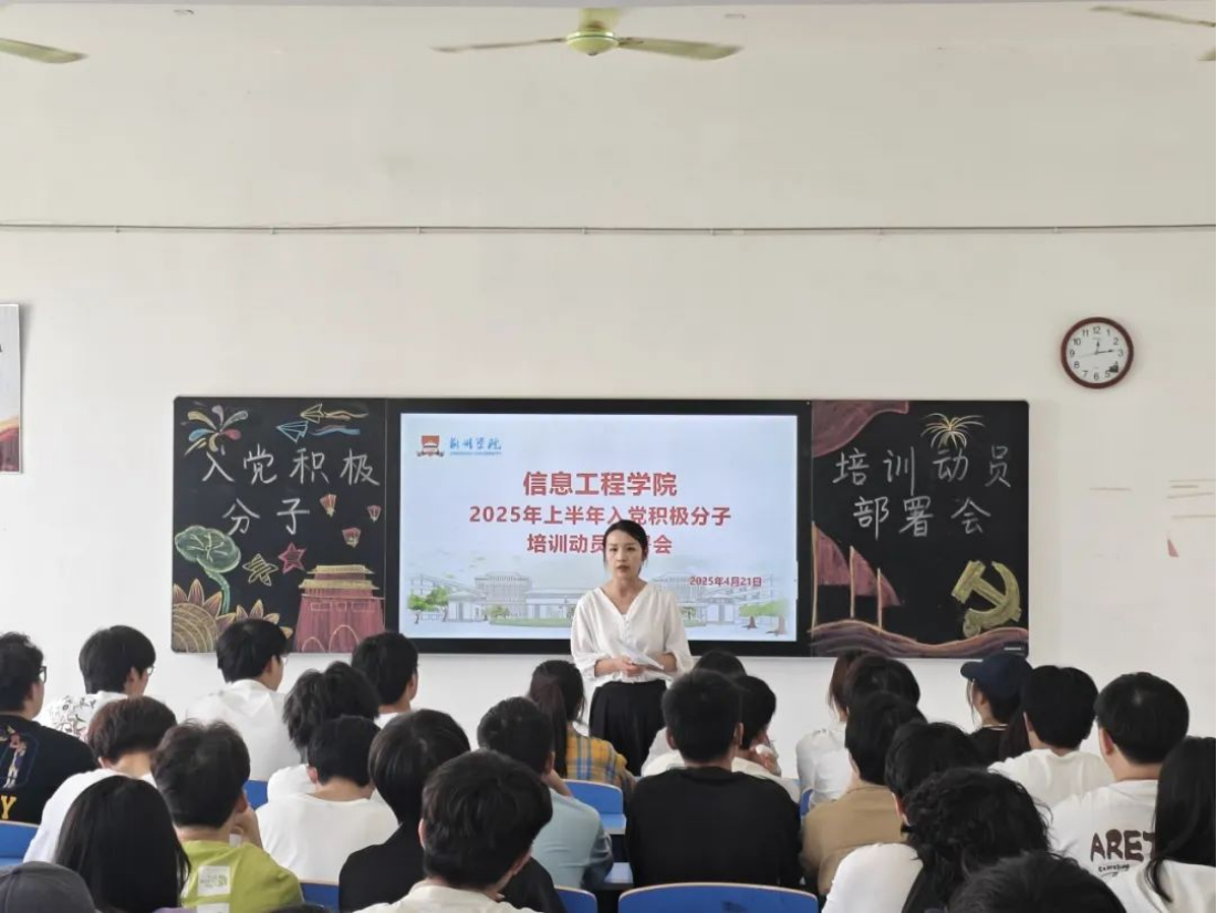 为全面提升入党积极分子的思想政治素质、理论水平以及政治素养,增强其党性修养和历史责任感。信息工程学院于2025年4月21日中午11:55在3402教室开展入党积极分子培训动员部署会。