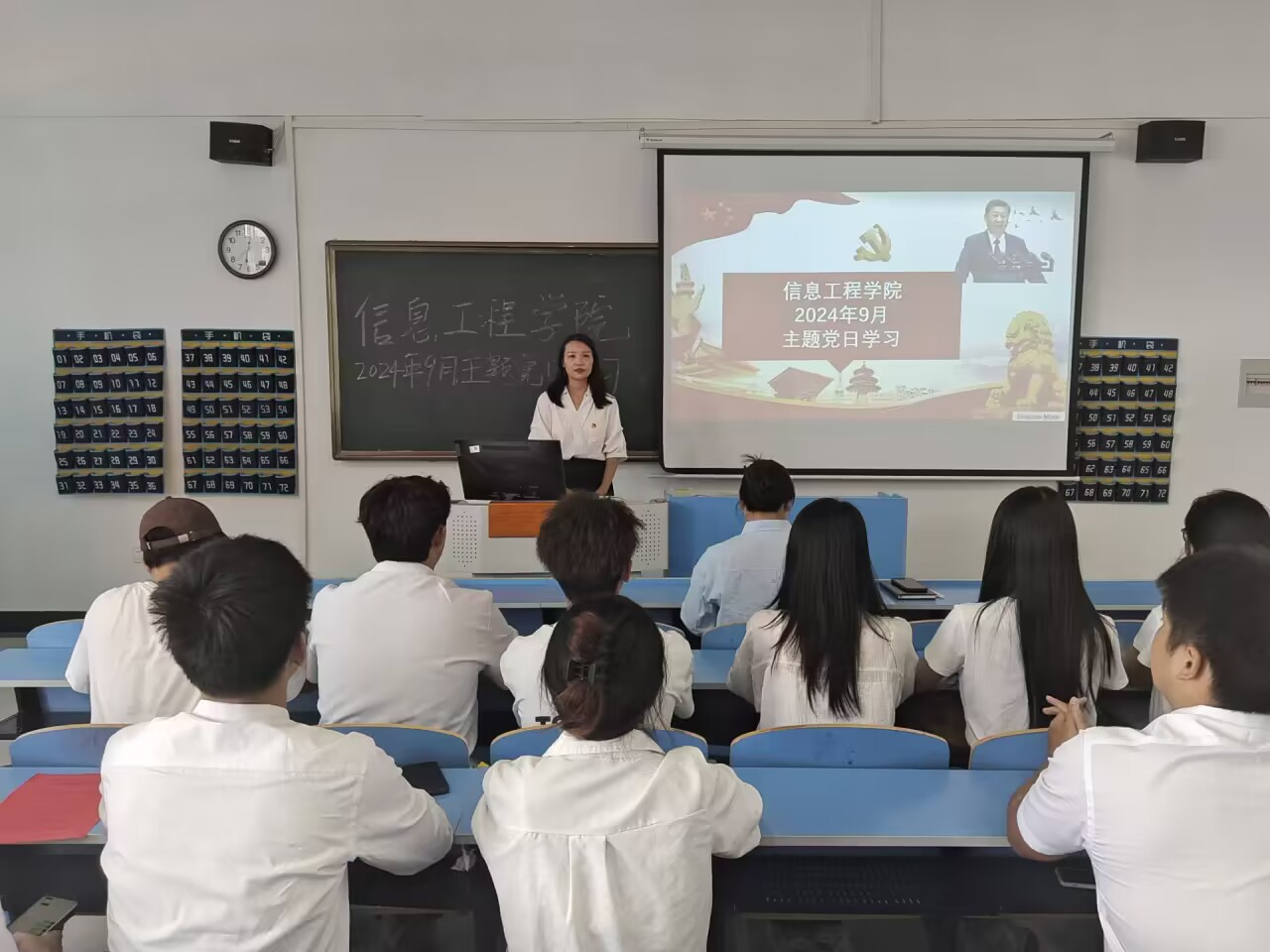 本网讯(通讯员 陈雪)9月27日,信息工程学院党总支在6505教室组织开展了9月政治理论学习与支部主题党日活动,我院全体教师及在校学生党员参加了本次学习活动。