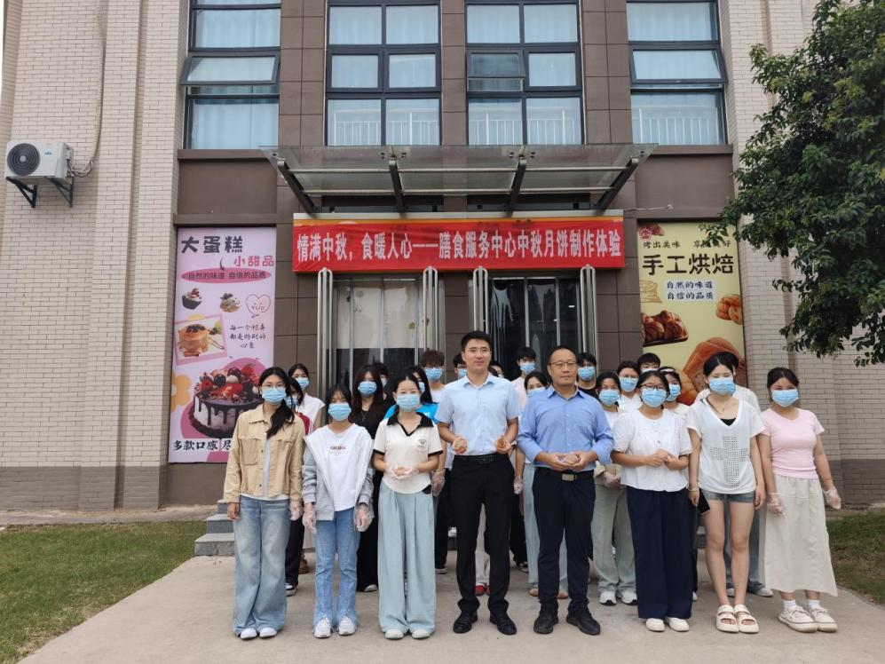 活动尾声,师生们在双创活动中心门前合影留念,红色横幅“情满中秋,食暖人心——膳食服务中心中秋月饼制作体验”格外醒目。此次活动不仅让同学们深入了解中秋民俗,更以美食为媒,拉近了师生距离,为校园生活增添了浓情暖意,也为即将到来的中秋佳节提前勾勒出团圆的美好图景。